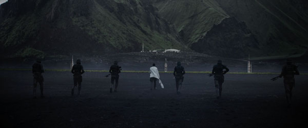 Lo que hay en “Rogue One”, sin embargo, es una utilización de la luz y el color que pretende buscar un efecto mucho más naturalista y veraz. No renuncia al cien por cien a ser una fotografía que acepte momentos de preciosismo o a la creación de imágenes de pura estética, pero en gran medida Fraser deja que sea Industrial Light and Magic la que deje boquiabierto al espectador con espectaculares integraciones y modificaciones de escenarios naturales para crear nuevos planetas en el universo “Star Wars” (haciendo uso de Jordania y las Maldivas). Lo que hace Fraser, como decíamos, es adoptar un perfil asombrosamente bajo y, curiosamente, buscar una estética poco llamativa pero sí muy realista, que curiosamente emparenta más a “Rogue One” con la herrumbrosa estética “Alien” que con sus secuelas, precuelas o lo que sean el resto de películas de la saga con respecto a la misma. Fraser, por tanto, utiliza muy pocas fuentes de luz pero siempre muy definidas, lo que hace que gran parte de la película posea un aspecto magnífico, como si estuviera realmente iluminada desde una única fuente de luz, o cuando menos, desde una única dirección de luz. Esta luz por lo general es lateral y hace que el punto donde incide sea el más luminoso de cada fotograma, dejando que los puntos del encuadre, a medida se alejan de este, vayan cayendo paulatinamente en penumbra (para ello, el aspecto de suave contraste descrito anteriormente es fundamental). Mención especial en este aspecto merecen las escenas de la sala de control de los rebeldes, en las que Fraser sugiere mucho más que muestra a través de luces integradas.
