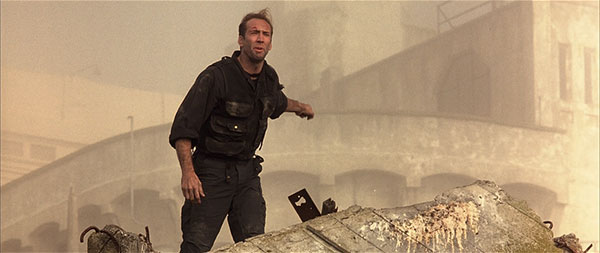 Si bien la imagen es excesiva (Schwartzman se refinaría después, hasta llegar al clasicismo de “Seabiscuit”), qué se puede decir de una puesta en escena que incluye miles de cámaras lentas para subrayar determinados momentos, cámaras de movimientos frenéticos, planos cerrados, rápidos travellings de aproximamiento a los personajes desde un ángulo bajo… en definitiva, toda la puesta en escena de Bay es puro artefacto, que ni deja ver las localizaciones cuando se trata de un escenario real, ni los decorados cuando es uno construido directamente para el film. Pero para bien o para mal, este tipo de cine hiper-estilizado tuvo un antes y un después con “The Rock”, aunque al realizador haya que reconocerle que, a diferencia de muchos de sus seguidores, sus películas todavía poseen un aspecto más físico, orgánico y menos digital que el de aquéllos que vinieron después de él.