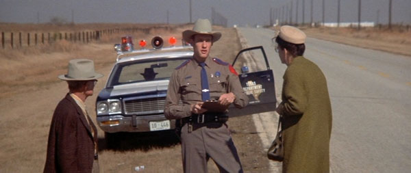 Como en casi toda su filmografía, para “The Sugarland Express” Zsigmond recurrió a una de sus herramientas predilectas, las lentes zoom, en este caso adaptadas al formato panorámico anamórfico, del que Spielberg se convertiría en uno de sus abanderados durante los diez años sucesivos, aunque posteriormente perdería interés en este formato. Rodando con la luz disponible hasta agotar la última luz de cada jornada, no son pocos los planos del film que muestran una calidad óptica muy comprometida, fruto de tener que rodar a máxima apertura (T4.5 ó T5.6 dependiendo de la versión del zoom) para captar la mayor intensidad de luz posible. Zsigmond no solo usa el zoom como focal variable, sino que en esta etapa, además, como zoom propiamente dicho, con muchos planos que muestran alejamientos y acercamientos, e incluso hacia el final del metraje, un “trombone-shot”, el famoso plano de Alfred Hitchcock en “Vertigo” que tan bien usaría el propio Spielberg en “Jaws” el año siguiente, en la escena de la playa en la que el personaje de Roy Scheider, en shock, presencia cómo el tiburón mata a un niño mientras se baña. Las lentes fijas, como en muchos otros films del húngaro, son utilizadas en algunos de los interiores del coche, por los evidentes problemas de espacio, así como en las secuencias nocturnas, para aprovechar su mayor luminosidad, incluyendo una transición desde el atardecer a la noche bastante conseguida.