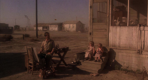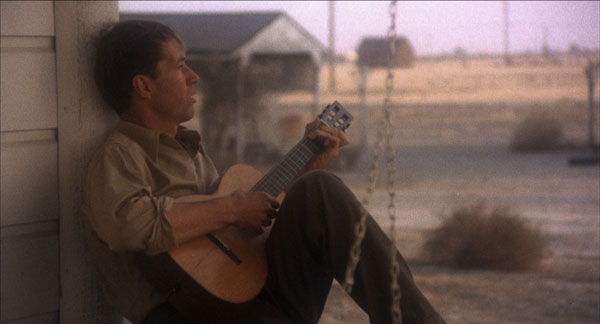 El film se inicia en polvorientos paisajes de Texas, que marcan el tono de lo que vendrá a continuación: usando una leve media marrón detrás de la lente, Wexler consigue que el tono general de color sea aún más terroso, pero además la combinó con filtros Low-Contrast o Fog (en función de las escenas) y utilizó el flasheado en distintas proporciones. Por ello, la película comparte el aspecto deliberadamente envejecido, brumoso y polvoriento con el que Vilmos Zsigmond maravilló en “McCabe And Mrs. Miller” (Robert Altman, 1971) y en “Heaven’s Gate” (Michael Cimino, 1980), a los que Wexler añade una sobreexposición muy apreciable, desde luego mayor que la de la película de Altman. La textura está tan conseguida y es tan brillante que atrapa de forma inmediata al espectador, puesto que además está complementada por un Wexler que, al mando de las luces, se muestra en estado de gracia, con un trabajo muy superior a los que solía ofrecer habitualmente.