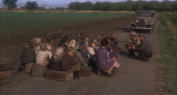 El director de fotografía fue una elección totalmente lógica, ya que se trató del siempre comprometido políticamente Haskell Wexler [ASC], que parece ser que incluso pudo haber sido su director antes que el proyecto cayera en manos de Ashby. Nacido en una familia adinerada de Chicago, Wexler sin embargo no continuó los negocios familiares, sino que emprendió una carrera en el mundo de los documentales que acabó llevándole a Hollywood, en donde en la década de los 60 realizó títulos como “America, America” (Elia Kazan, 1963) o sus dos conocidos trabajos para Norman Jewison, “In the Heat of the Night (1967) y “The Thomas Crown Affair” (1968), además, por supuesto, de “Who’s Afraid of Virginia Woolf?” (Mike Nichols, 1966), por la que obtuvo el Oscar a la mejor fotografía en blanco y negro. Se mantuvo siempre activo en documentales y dirigió y fotografió cientos de anuncios para la compañía que compartía con Conrad Hall, haciéndose cargo de “American Graffiti” (1973) en labores más allá de las estrictamente fotográficas como favor hacia George Lucas, aunque tuvo dos sonoros despidos en los 70: “The Conversation” (Francis Coppola, 1974) y “One Flew Over The Cuckoo’s Nest” (Milos Forman, 1975), siendo sustituido en ambos casos por Bill Butler. “Bound For Glory” fue el primero de los cuatro títulos que hizo para Ashby y por el obtuvo su segundo Oscar. Posteriormente, bien entrados los 80, sería nuevamente nominado por “Matewan” (John Sayles, 1987) y por “Blaze” (Ron Shelton, 1989).