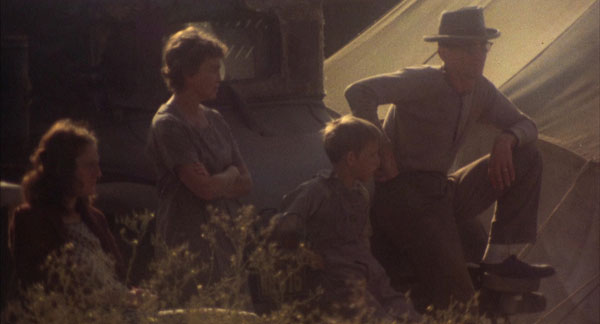 El resultado, glorioso, hace todos los honores al título original de la película, pues además el trabajo de cámara (a cargo del futuro director de fotografía Don Thorin) es muy sobrio y elegante. Y por si fuera poco, “Bound for Glory” fue la primera película en hacer una utilización comercial de la Steadicam, operada por su propio inventor, Garrett Brown. Hay varias tomas en la película que hacen uso de la misma, pero sobre todo destaca un largo plano secuencia en que la cámara baja desde una grúa y, cuando llega al suelo, Brown comienza a andar con una Arri 2c cargada en la Steady y se adentra entre la multitud para posteriormente seguir a David Carradine y Randy Quaid mientras se mueven y dialogan entre la gente. “Rocky” y “Marathon Man” hicieron uso del invento el mismo año, pero fue “Bound for Glory” el título en que primero se usó y como tal ha pasado a la historia. Ello quizá, paradójicamente, ha hecho que el trabajo del propio Wexler, extraordinario en cualquier caso, haya quedado un poco ensombrecido, al estar muy ligada siempre “Bound for Glory” a la Steadicam, cuando realmente su aparición aquí, por muy novedosa que resultase, es solo un granito de arena más dentro de un gran conjunto.