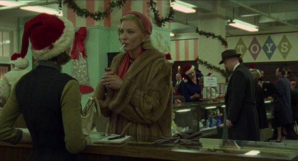 Fruto de utilizar principalmente emulsiones de sensibilidad media (o incluso la emulsión de 50 ASA equilibrada para luz día en los exteriores, la menos sensible que fabrica Kodak), así como por una generosa exposición de los negativos, el grano de “Carol” no es intrusivo o llamativo para casi ningún espectador; posee cierta presencia eso sí, pero es comparable al de muchas otras películas de los años 60-70 que hicieron uso del revelado forzado o fueron iluminadas en condiciones algo escasas. Por ello, junto con el elaborado estilismo, diseño de vestuario y la ambientación a través de la escenografía (e incluso, a buen seguro, a través de unos invisibles CGI orientados a eliminar vestigios de modernidad de los fondos y segundos planos) el aspecto visual de “Carol” es muy, muy logrado, trasladando y envolviendo al espectador en la época en que se supone que transcurre la acción en pantalla. Quizá, más allá de alguna toma exterior en la hora mágica, o de los brillantes planos a través de cristales, pueda echarse en falta algún destello o detalle de elevada inspiración a lo largo de la proyección, pero lo cierto es que la película funciona muy bien a nivel estético, fruto de lo cual fue justa candidata a los principales premios de la temporada 2015 en el apartado relativo a la mejor fotografía, e incluso consiguió alzarse con el que otorga la British Society of Cinematographers (BSC), algo especialmente complicado para operadores que no sean ingleses.