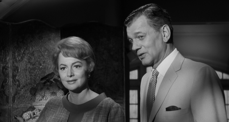 La misma profundidad es también evidente en los interiores nocturnos, que son aún más interesantes y modélicos. En los mismos, lo que hace Biroc -probablemente- es trabajar con la misma intensidad de luz que en las escenas diurnas, pero siendo aún más preciso con sus aparatos a la hora de iluminar o no determinadas partes del decorado. Ello lo hace no solo a través de sus luces, sino también, de muchos cortes delante de las mismas, de gobos y, en general, técnicas para concentrar y dirigir sus luces hacia puntos muy concretos, que son los que lucen correctamente expuestos. El resto, prácticamente, son transiciones a negro, aunque con el detalle justo en la imagen. Ello puede hacerlo porque la puesta en escena de Robert Aldrich, una suerte en la que el director siempre destacó mucho y que, de hecho, solía cuidar mucho más que la luz de sus películas, es muy precisa. Tanto los movimientos de cámara como las posiciones de los actores están absolutamente coreografiados y marcados de antemano, lo cual es la única manera de hacer las cosas cuando se pretende trabajar con luces tan puntuales solo en determinadas áreas del fotograma. Es decir, donde incide la luz de Joseph Biroc, el espectador ve exposiciones correctas, pero donde no incide, la imagen es muy oscura. De esta manera, el director de fotografía dirige la mirada hacia los puntos de interés, generando por el camino imágenes de un brillo y un contraste apabullantes, con pinceladas de luz aquí y allá y actores y actrices caminando entre múltiples cortes de luz.