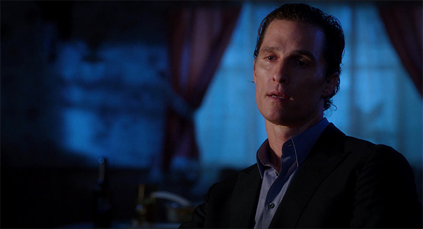 “Killer Joe”, siendo una producción independiente, destaca por ser el primer film de Deschanel rodado en HD, con la Arri Alexa en formato Prores (después vendría “Abraham Lincoln: Vampire Hunter” en ArriRaw). Quizá por ello sea una de las escasas ocasiones en que el operador ha hecho uso de filtros difusores (posiblemente Classic Soft), con toda probabilidad para contrarrestar un poco la dureza de la imagen digital. De su estilo, dentro de que se trata de un film con una propuesta directa y sin mucho espacio para la estilización, destacan sus clásicas noches azuladas, empleando fuentes HMI subidas en grúas, como luz cenital. Asimismo, en los interiores, utiliza fuentes integradas en los decorados, como lámparas de mesilla y fluorescentes en la cocina, aunque también como punto de partida para introducir luces que inciden sobre los personajes de forma más intensa y contrastada,a veces mezcladas con el azul que entra por las ventanas. Lo curioso es que en muchas ocasiones también utiliza un ligero azul como relleno, incluso cuando recrea en los interiores la luz solar dura incidiendo sobre los personajes. En el encuentro en los billares sí emplea una única fuente de luz lateral, sin más mezclas, aunque quizá la más interesante sea una escena en un club rodada con un azul muy intenso, de gelatina tipo Steel Blue, con una enorme saturación incluso en los rostros. Los exteriores son típicos de él; sin artificios y generalmente rodados a contraluz.