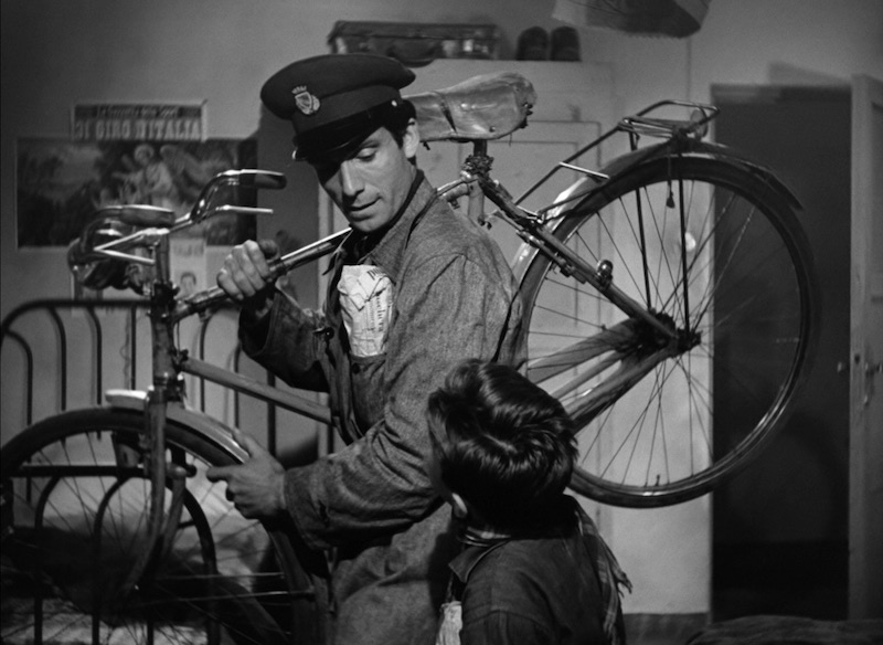 Obra maestra del neorrealismo italiano, que tiene como protagonista a Antonio (Lamberto Maggioriani), un hombre que lleva sin trabajo dos años, tras la Segunda Guerra Mundial, y que cuando consigue uno para pegar carteles por la ciudad, lo hace bajo el requisito indispensable de tener una bicicleta con la que poder desplazarse. Tras empeñar sus sábanas, consigue recuperar la suya, que había tenido que empeñar también antes. Y es entonces cuando, el primer día de trabajo, le roban la bicicleta. Acompañado de su hijo Bruno (Enzo Staiola), Antonio dedicará toda una jornada de domingo en una búsqueda frenética que le permita recuperarla y conservar su empleo. Vittorio De Sica rodó el film de manera muy directa, con actores no profesionales y en localizaciones reales, realizando así un tremendo retrato de la Italia de la posguerra, así como de la desesperación humana, con múltiples lecturas, que deja tanto imágenes como secuencias completas imborrables de la memoria del espectador.