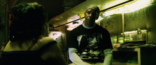 Además, aunque nunca hubo un artículo de “American Cinematographer” que pudiera corroborarlo, siempre se ha dicho que Scott y Cameron rodaron algunos momentos aislados en Ektachrome (7239, 160D) en 16mm, que corresponderían con esas transiciones y momentos hipergranulados, con alteraciones en la cadencia de fotogramas por estar rodados -adrede- con cámaras manuales y sin motor, para alterar la velocidad y, en apariencia, incluso realizar dobles exposiciones (viene a la memoria el plano de Denzel Washington con la mirada perdida en la ventana del coche, que se repite varias veces en la proyección). Es muy posible que el 16mm fuese una inspiración directa de “Cidade Deus” (Fernando Meirelles, 2002), que lo alternó con tanto acierto junto con el 35mm, puesto que Tony Scott ofreció el puesto de operador de cámara al director de fotografía de aquél film, César Charlone, que había sido nominado al Oscar por su trabajo. Charlone firma la película como operador -aunque hubo más- y según algunas fuentes de la época, no terminó el trabajo, que aceptó por el dinero que le ofrecieron y por la posibilidad de ver desde dentro, y desde una posición privilegiada, las entrañas de un rodaje Hollywoodense.