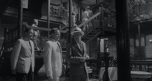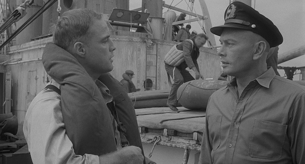En el caso de “Morituri”, se trata de una película compleja, rodada en blanco y negro, en una mezcla de decorados de estudio y de exteriores en la cubierta de un carguero real. Hall había aprendido su oficio en blanco y negro y eso no era un problema para él, sino al contrario, era su hábitat natural y, si acaso, tardó en acostumbrarse al uso del color, que se impondría ya de forma casi definitiva sobre esta época. Lo curioso del caso es que Hall era un hombre joven cuando realizó este film (debía de rondar los 38-39 años en el momento de rodarlo) pero la forma en que lo afrontó es total y absolutamente la de un veterano de Hollywood. Y no solo un veterano de Hollywood, sino uno además de corte absolutamente clásico. Ello se debe, sin duda, a que Hall aprendió muy bien el oficio de sus maestros, en aquél momento muy sometido a las reglas de los estudios de Hollywood, y ello tiene como consecuencia que, en sus primeros pasos en solitario, el director de fotografía siguió al dedillo ese manual sobre el que había aprendido su oficio.