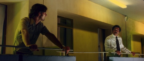 En interiores, justifica la iluminación de alto contraste en las ventanas, pero dentro de las estancias casi siempre emplea fuentes de luz agresivas sobre los personajes, sin importarle demasiado si el efecto es naturalista o no, de pura exageración. Pero lo más interesantes quizá sean las luces de color que emplea: algunas escenas nocturnas poseen fluorescentes tipo cool-white (que lucen verdosos) y tipo daylight (que lucen azulados), e incluso una imitación con HMIs del tono de color de esos tubos tan típicos de los 70. Pero adicionalmente, Kaminski emplea colores como el amarillo para algunos edificios, e incluso algo de verde, como el hotel en el que tiene lugar uno de los atentados.