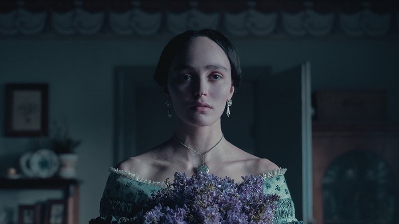 Los interiores diurnos quizá sean lo menos interesante: Blaschke se esfuerza de manera evidente en recrear una luz del norte que es una mezcla de un haz de luz dura y una gran fuente de luz suave, muchas veces retratado con una veladura alrededor de la fuente de luz (seguramente, por el empleo de los Baltar), pero a veces da la sensación de que su luz está «demasiado» abierta, no porque no sea direccional, sino porque parece que no hay un control excesivo sobre la cantidad de luz que incide sobre las sombras. De modo que, siendo una luz fría y contrastada, a veces tiene una apariencia algo plana. Las circunstancias mejoran en las noches o en las escenas de sueños o terror nocturno, especialmente respecto a «The Northman». En aquélla película, Blaschke experimentó con un aspecto monocromático para este tipo de escenas, casi cercano al blanco y negro, que resultaba realmente extraño (y distraía) en pantalla. En el caso de «Nosferatu», el director de fotografía ha empleado el mismo tipo de filtro «scotopic» customizado para el film anterior, y que elimina prácticamente los rojos. Sin embargo, en este caso no han optado por desaturar el canal azul en post-producción, por lo que, aunque el azul en pantalla es muy monocromático (casi parecen imágenes en «azul y negro«), por lo menos se ajustan más a la convención cinematográfica de lo que el espectador suele identificar con la luz de luna. Sorprende, en todo caso, que este tipo de escenas posean, de manera evidentemente intencionada, una luz muy dura, que sin embargo sirve para separar bien sombras y zonas de luz, por establecer una mayor y mejor gradación en las zonas de oscuridad.