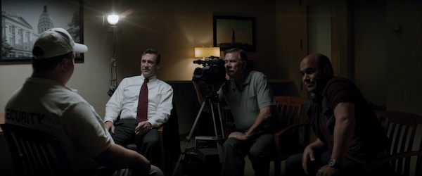 A continuación, el grueso de la película transcurre por cauces normales, recuperando la combinación de la Arri Alexa con la Serie C de Panavision su gozoso aspecto habitual. Belánger plantea casi siempre una iluminación lo más sencilla posible, con fuentes proyectadas a través de las ventanas y luz suave sobre los personajes, o bien luz suave procedente de fuentes integradas en los interiores nocturnos y luz cenital sobre los personajes, dejando que uno de los sellos habituales del cine de Clint Eastwood, primero implementado por Bruce Surtees, continuado por Jack Green y llevado al límite por Tom Stern -los potentes haces de luz dura– aparezcan únicamente de forma puntual y, generalmente, imitando los efectos de la luz del sol, como por ejemplo, en la escena en el periódico con persianas venecianas o en la escena final en la cafetería, entre los personajes de Hauser, Rockwell y Hamm, en la que un gran aparato situado a mucha distancia hace las veces del sol. Por supuesto, lo más complicado del rodaje son las secuencias de conciertos como en el que se produjo el atentando y, como decíamos, parece que Belánger las resuelve con muchas luces interactivas y LED de diferentes tonalidades que producen esa luz que fluctúa constantemente durante la escena, tanto en su intensidad como en color.