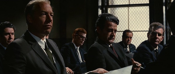 Richard Fleischer también fue conocido por ser uno de los directores más hábiles en el uso del formato panorámico anamórfico, habiendo sido además uno de sus primeros usuarios en “20000 Leagues Under The Sea” (1954). “The Boston Strangler” contiene composiciones memorables al respecto, con muchos personajes muy bien repartidos por el encuadre y una operación de cámara que nunca pierde las marcas de los intérpretes. Los resultados son, por lo tanto, muy buenos, pero podrían haber sido aún mejores de no haber caído el film en el uso y abuso de una herramienta como el zoom, que en aquél entonces llevaba relativamente poco tiempo disponible. Además de algún plano con zoom aquí y allí, está empleado con muchísima frecuencia en la parte final de la narrativa, cuando Fleischer, a través del personaje de Henry Fonda, trata de introducirse en la mente del asesino. Si solo lo hubieran empleado para leves acercamientos sobre Tony Curtis, podría tener un pase… pero lo cierto es que el zoom (seguramente el primer Angenieux 25-250mm T3.9, adaptado a formato anamórfico duplicando su focal) está empleado con excesiva alegría durante esa parte de la proyección, añadiendo ciertos problemas (opticos y desenfoques) que fácilmente podrían haber sido evitados si en lugar del zoom los cineastas hubieran empleado una herramienta más apropiada como el travelling.