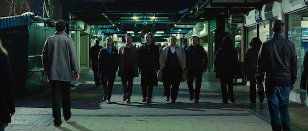 De la misma manera, la parte de comedia del film posee un aspecto diferente al de la parte de acción. Precisamente, el estilo más natural, al menos con respecto a las comedias norteamericanas, de «Hot Fuzz», parece la fuente de inspiración, ya que visualmente el comienzo de «The World’s End» es muy similar, solo que Bill Pope lo ejecuta mejor que Jess Hall en aquélla película. Sin embargo, una vez que los robots extraterrestres hacen acto de presencia en pantalla y el film cambia al formato anamórfico, el aspecto se vuelve más sofisticado y trata de llamar más la atención, con múltiples flares y efectos lumínicos para provocarlos, una profundidad de campo más estrecha, luz en los fondos de las calles, etc. El aspecto, eso sí, por mucho que integre bien los efectos digitales en las imágenes reales captadas en celuloide, nunca es nada especial ni resulta particularmente interesante. De hecho, lo mejor es, sin duda, cómo Edgar Wright mueve su cámara y ejecuta algunas composiciones de imagen, especialmente, cuantos más personajes tiene delante de la misma, circunstancia en la que parece que el director se crece.