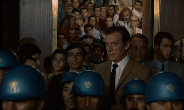 Rodada principalmente en Argel (en varias de las mismas localizaciones empleadas por Gillo Pontecorvo en su memorable “La Battaglia Di Algeri” solo tres años antes) con un presupuesto tan reducido que se dice que algunos miembros del equipo técnico y de producción tuvieron que participar en el film delante de las cámaras (entre ellos, Coutard) para completar el reparto, la imagen de “Z” es muy típica de Coutard. Lo que en otras palabras, hace que sea absolutamente innovadora (desde una perspectiva de 1969, año de su estreno) con respecto a casi cualquier otro. Costa-Gavras, quien sabe si en cierto modo inspirado o haciendo uso de algunas de las técnicas que tan bien le funcionaron a Pontecorvo en su película, apuesta por una puesta en escena de un realismo casi documental, en el que muchas de las acciones y dirección de extras (en las escenas de multitudes) parecen casi improvisadas. Pero sin embargo, como en el film de Pontecorvo, la precisión de muchos de los movimientos, coreografías y “blocking” de los personajes evidencia un ejercicio de puesta en escena de gran precisión y trabajo previo para conseguirla. Son frecuentes las composiciones en las que muchos personajes aparecen en cuadro, con movimientos de cámara al hombro o zooms, pero todos ellos están correctamente situados o repartidos por el encuadre, incluso creando diversos planos focales y profundidad, demostrando que una puesta en escena realista no tiene por qué ser casual y puede estar (bien) planeada de antemano.